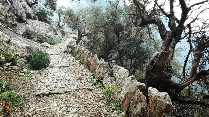 Hned za Sollerem skrytým ve stínu hor trasa prudce stoupá a nabízí dle mého názoru jeden z nejkrásnějších úseků celé GR221. Za nádherným starými olivovými háji se chodník strmě škrábe vzhůru a vy se s bušícím srdcem a bolavými koleny budete kochat dramatickým výhledem hluboko pod sebe. Odměnou vám bude po neskutečně náročných devíti kilometrech pohled na umělou vodní nádrž Embassament de Cuber.