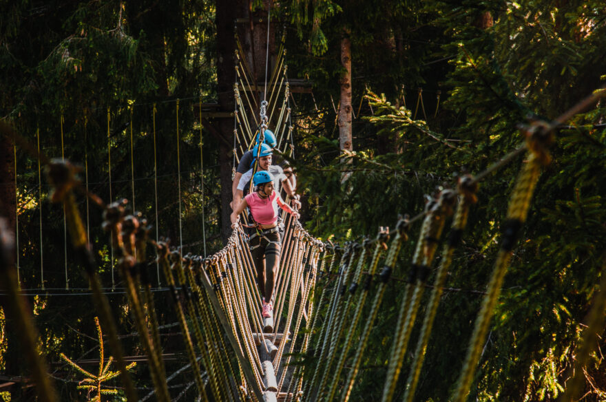 V samotném srdci údolí Saalbach Hinterglemm se nachází nejvýše položená stezka v korunách stromů v celé Evropě! Společně s „Golden Gate Bridge Alp“ tvoří unikátní zážitkový areál, který musíte navštívit.