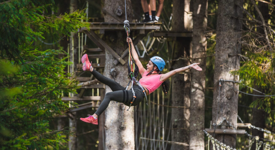 Vítejte v největším lanovém parku v Evropě! High Rope Park Saalbach Hinterglemm nabízí více než 8 km lanových překážek, 200 různých stanovišť a 30 lanových skluzavek ve výškách od 3 do 40 metrů.
