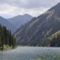 Ráno nám brzké vstávání příliš nepomůže, protože jezdíme po Almaty a nemůžeme se dostat na výjezd k našemu cíli – Boľšomu Almatinskomu ozeru. Nakonec ale stojíme v přeplněném autobuse LAZ, který s námi funivě šplhá do horského podhůří. Když i jemu dojde dech, začínáme pracovat my. Zatím to je dobré – silnice se krásně vine podhůřím a když dosáhneme jezera, začíná první pozdrav hor – liják. Naštěstí se počasí brzy umoudřilo a můžeme nastoupit tam, kde již žádné autobusy nejezdí. První tábor rozkládáme na břehu říčky Ozyorné, kterou je nám druhý den souzeno překonat.