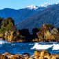 Když přijde zima do Martins Bay, slunce rozzáří zelené skály i zasněžené štíty. Tehdy si tu můžete dát tu nejlepší romantiku a sám procházet liduprázdnou krajinou od srubu ke srubu. Pojďte mlčky s námi.