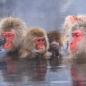 Japonské sněžné opice se v zimním období ukrývají před mrazem u vývěrů horkých pramenů. Pozorovat a hlavně napodobit je můžete třeba v okolí lázeňského městečka Jamanouči.