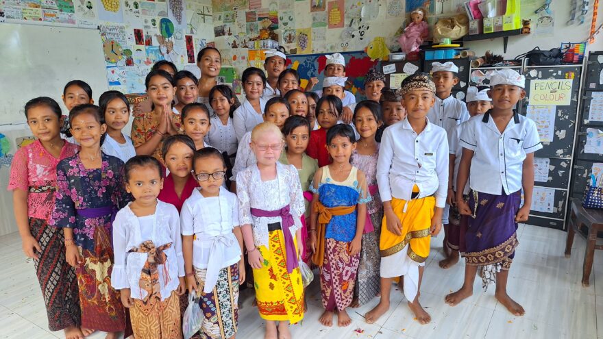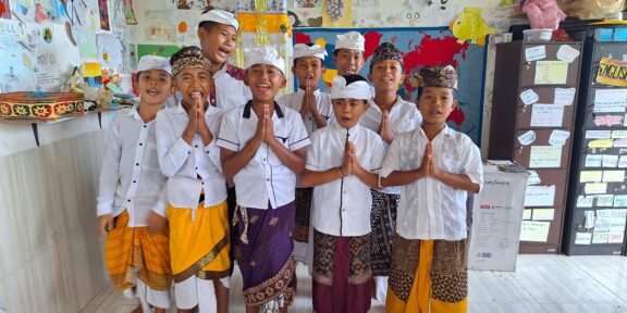 Bohyně Saraswati je bohyně vzdělání, umění, moudrosti, hudby a estetiky. Balijci tomuto svátku tady u nás říkájí „ceremoni buku“ jako svátek knížek – potažmo znalostí a vědění. V tento den se všichni odpoledne sejdeme u nás v klubovně. Všichni jsme slavnostně oblečeni do kabaji a sarongu, to jsou typické hinduistické slavnostní oděvy. Já, učitelka a i všechny děvčata máme sepnuté vlasy a v účesu zapíchnutou kytičku plumérie. Chlapci mají a hlavách Udeng – tradiční balijsou čelenku.