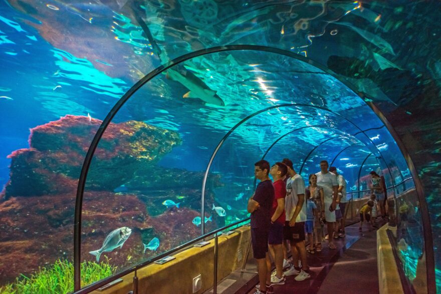 Barcelonské akvárium bylo otevřeno v roce 1995, od počátku s jasným záměrem, že bude institucí sice volnočasovou, ale zároveň také vzdělávací, s heslem „poznáním k lásce, láskou k ochraně a ochranou k zachování“. O výzkumných a ochranářských projektech, na nichž se akvárium v posledních letech podílelo, stejně jako o vědeckých institucích, s nimiž spolupracovalo, se lze dočíst na jeho internetových stránkách. Potenciálního návštěvníka především zajímá, co ho čeká po zakoupení vstupenky. Není toho málo. I když Středozemní moře je hlavním tématem, dostane se rovněž na moře tropická a v malé míře i na tropické sladké vody. Hlavní mořská část expozice je umístěna v podzemí. Logicky, protože jenom v 21 očíslovaných nádržích je něco k 4,5 milionům litrů vody. Představte si tisícovku dobře narostlých indických slonů – zhruba tolik ta voda váží.