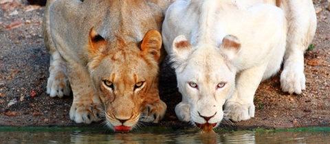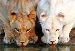 Přestože jsou vzácní, jsou občas hlášeni v Timbavati v jižní Africe. Jejich celkový počet se odhaduje na několik stovek jedinců na celém světě. Jejich neobvyklé zabarvení je dáno recesivním genem. Obě lvíčata jsou samice – narodily se v květnu 2009. Hned po narození čelily velkému stresu, otec smečku záhy opustil (zřejmě uhynul v souboji s rivalem). Smečka si musela vystačit bez samce a opustila nebezpečné teritorium – bílá mláďata jsou snadným terčem…