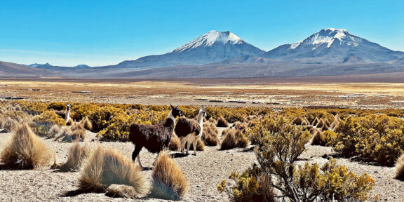 Je jasné ráno a kontúra Parinacoty je čistá, zasnežená sopka nad jazerom Chungara je neskutočná, podobne ako Sajama o kúsok nižšie.