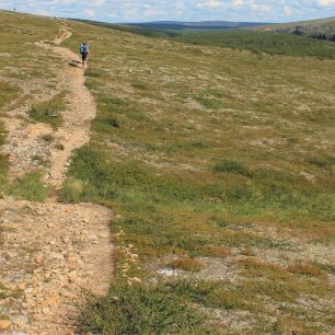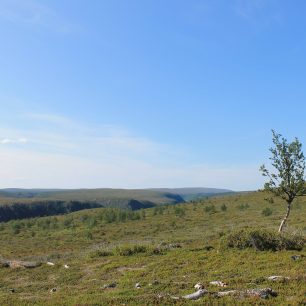 Třetí den ráno vyrážíme ze dna kaňonu zase vzhůru. Po asi hodině se odpojujeme z hlavní stezky na severozápad směrem k hoře Guivi. Trasa se vine mírně zvlněným teréném, pozorujeme pobíhající soby a někdy jdeme po dřevěných lavičkách, které nás chrání před hlubokými mokřady. Zanedlouho dorazíme k chatičce pod horou Guivi, která je sice na větrném, ale naprosto nádherném místě.