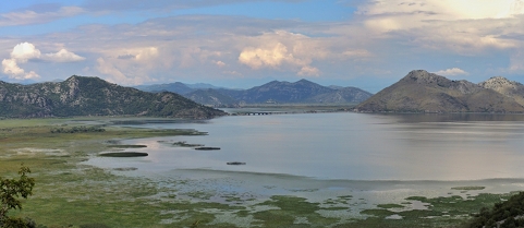 Při putování na kolech v Černé Hoře jsme se chtěli podívat i ke Skadarskému jezeru. Poprvé jeho hladinu a okolní hory vidíme až při klesání do města Virpazar. Cestou od moře je totiž potřeba překonat vysoký hřbet hor, což zabere několik hodin.