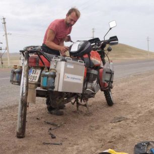 Museli jsme řešit 88 závad z toho dvacetkrát defekt pneumatiky. Defektů bylo poměrně dost – dílem za to mohly záplaty, které nechtěli moc držet a dílem měkká směs pneumatik (na konci dost sjetých 🙂 ). Závady byly od malých prkotin, až po tři velmi závažné (2 x ložiska na klice a jedna vadná cívka zapalovaní). Cestou jsme měli dva pády. Jednou jsem to položil na hlubokém štěrku v Turecku a jednou sjel Zajíc do škarpy, protože nebylo nic vidět kvůli prachu (asi 300 km pred Magadanem). Honza padal jen v nízkých rychlostech do měkkého bahna :-).