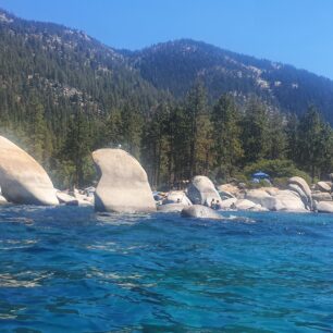 Vydali jsme se na hezčí, nevadskou, stranu jezera, kde se natáčel druhý díl Kmotra. Místní měli zrovna státní svátek, a tak jsme na místo dorazili víc jak s půlhodinovým zpožděním. Cestou jsme pozorovali casina, ta se nachází pouze na nevadské straně, kde je hazard legální. I přes auty zaplněné okraje silnic se nám povedlo zaparkovat hned u pláže. Nejspíše kvůli paddleboardu na střeše.