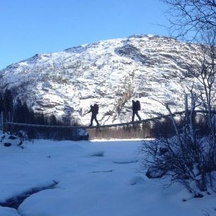 Mohlo mě napadnout, že vodopád bude v zimě zmrzlý a schovaný pod sněhem, podobně tak značení stezky a vlastně i stezka sama. Po přibližně čtyřech hodinách chůze nejprve zamrzlým a praskajícím korytem řeky následované zoufalým bloudění v hlubokém sněhu otáčíme. Zvítězil rozum před romantikou chaty v severské pustině a poměrně vyčerpaní jsme se ve vlastních stopách vrátili k autu a na „základnu“ do Bodø.
