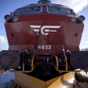 Skoro to ani není třeba, vlak jede jako po másle. Ráno se probouzíme v jiném světě. Čekali jsme spíše zamrzlé fjordy a hluboká údolí, ale za ranního slunce se mžouráme po nekonečných bílých pláních s horami kolem, kterými si razí cestu naše lokomotiva pomocí sněhového pluhu.