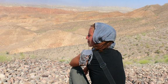 Cesta na vrcholový hřeben vede po strmém a suťovitém svahu. Jakmile ho překonáte, naskytne se vám výhled za nedalekou kyrgyzskou hranici a rozlehlé pohoří za ní. Na severní straně se tají dech nad siluetou přehrady ležící pod hraničními hřebeny Kazachstánu s Uzbekistánem, které se na západ svažují ke žlutým rovinám Kyzylkum. Fotíme se u vrcholové konstrukce a vyrážíme na dlouhou cestu do údolí severním směrem, k osadě Yangikurgan.