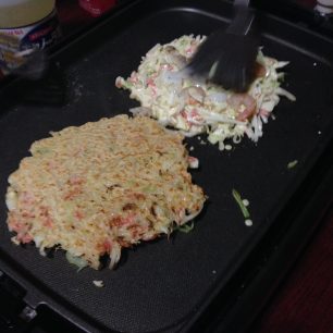 Zamíříte-li do Osaky, určitě narazíte na okonomiyaki. To je jakási slaná verze palačinky, kdy se těsto míchá se zelím, houbami, cibulí, masem, krevetami, ale klidně i sýrem apod. V podstatě s čímkoliv, co se vám dostane pod ruku. Možná i proto se okonomiyaki nazývá japonskou pizzou. V Hirošimě pak můžete ochutnat místní verzi, kde se jednotlivé ingredience skládají na sebe, místo aby se míchaly dohromady. Vzniká tak obrovská verze, kterou stojí za to ochutnat.
