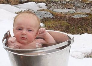 Tatínek mě ve sněhu s takovými velikánánskými botami odnesl přes dvě stě kilometrů daleko. Od chaty k chatě. Potkali jsme medvědici s medvídětem, losy a soby. Koupal jsem se v kýblech s teplou vodou a pak jsme zase přijeli domů. Začal jsem tam více vnímat svět. A naučil jsem se převalovat na břicho a držet hlavičku.