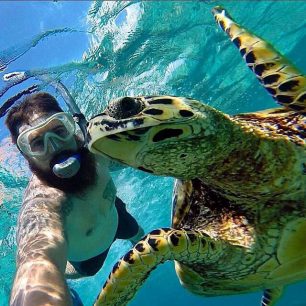Na filipínském ostrově Apo žijí velké mořské želvy. Pozorovat, jak ukusují mořskou trávu a každou chvílí plavou k hladině se nadechnout, bych vydržela věky. Když se držím stranou, želva si mě ani nevšimne a já se můžu nerušeně dívat. Návštěvníků na ostrově jsou mraky, jenže většinou netuší, jak se mají při setkání se želvami chovat. A tak nezřídka vidíte turisty ve svítivých plovacích vestách, jak stojí ve vodě v kroužku kolem želvy, vytahují tyče s foťáky, strkají hlavu pod vodu a fotí si s ní selfie. A když želva v panice prchne, rychle spěchají za ní, aby udělali ještě aspoň pár fotek…