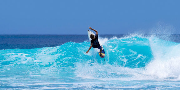 Jedna, druhá, třetí… teď! Vyhoupnu se na surfovací prkno a pádluji, co mi ruce stačí. Tři vteřiny a bílá pěna mě dostihne, popadne a prkno náhle sviští neuvěřitelnou rychlostí. Nazvednu se na pažích a vyskočím s jednou nohou vpředu, vybalancuji a…. uááááá…. už si letím jako s větrem o závod. Pode mnou se vlna nabaluje a uhání ke břehu.