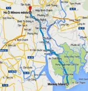 Po hodině jízdy dorazíme k přístavu Pha Binh Khanh, kde se nalodíme na trajekt, který je již zaplněn motorkami i nákladními vozy a po pouhých deseti minutách plavby se ocitneme na druhém břehu řeky Nha Be a pomalu se přibližujeme k Opičímu ostrovu, kam dojedeme asi za půl hodiny. Asfaltová cesta je lemována mangrovníky, od kterých nemohu odtrhnout oči a chvílemi si připadám jako v pohádkovém filmu od Tima Burtona.