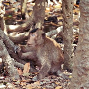 Pomalu se procházíme parkem a mě nejvíc baví pozorovat ty malé, roztomilé potvůrky, protože mi až moc připomínají některé z mých přátel a občas i mě samotnou. Sleduji práci jejich rukou při vzájemném čištění, společné hrátky i pře, usínající jedince na kořenech mangrovníků a opičku, která v puse okusuje stéblo trávy a u toho se škrábe na prstech u nohou. Mohla bych si je prohlížet celé dny a myslím, že by mě takto strávený čas jen tak nepřestal bavit.