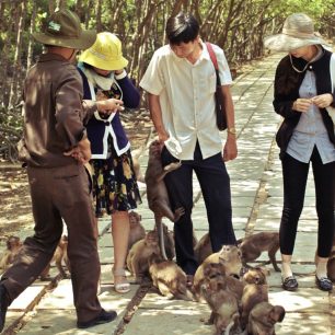 Pokračujeme procházkou po parku, přitom posloucháme příběh, jak tu za války byla partyzánská základna Rung Sac a že oblast byla tehdy notně poničena a odlesněna použitím defoliantu agent orange, což již naštěstí není znát. Opice mi s každým krokem připadají stále drzejší, protože po mně skáčou a zezadu mě plácají po zadku, což ve mně vyvolává záchvaty smíchu, ale krotím se, abych je nepopudila ještě více.