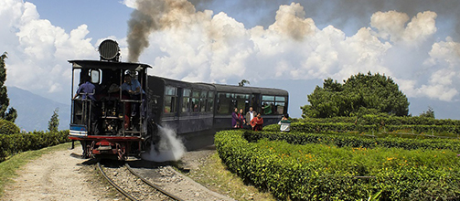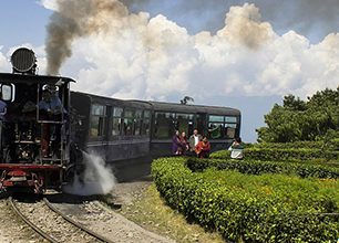 | Vysokohorská železnice v Darjeelingu, které se také přezdívá toy train je himálajská úzkokolejná železnice, která byla uvedena do provozu v roce 1881.Už od počátku kromě dopravy čaje plnila i rekreační funkci.V Darjeelingu končí v nadmořské výšce 2200 m, vede z Nového Džalpajguri a je téměř 90 km dlouhá.Zastávka Ghoom v nadmořeské výšce 2 258 m je druhou nejvýše položenou železniční stanicí na světě. Ve své době patřila k technickým zázrakům, dnes je její provoz ohrožen sesuvy půdy a finančně náročnou údržbou.Od r.1999 patří ke světovému dědictví UNESCO. |