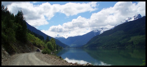 Z Pembertonu pokračujem po této drkotavé prašné cestě podél dlouhatánského jezera Lillooet Lake. Cesta je opravdu dost špatná, a našich plánovaných dvacet minut jízdy se protahuje na dvě hodiny. Konečně jsme u výchozího bodu u mostu přes jezero. Je nás sedm lidí na tři lodě, což zanmená, že jeden člověk bude souběžně s námi posunovat auto a prostřídáme se. Pítrovi se moc nechce pádlovat po stojaté vodě jezera, tak bude řídit první a počká na nás pár km po proudu.