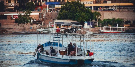Nil v Asuánu působí na první pohled relativně čistým dojmem a má pěknou modrou barvu. Místní se při převozu na druhý břeh rituálně napijí z jeho vod, což ale rádi vynecháváme. Stačí, když si z Egypta přivezeme pár suvenýrů a ne bilharziózu.