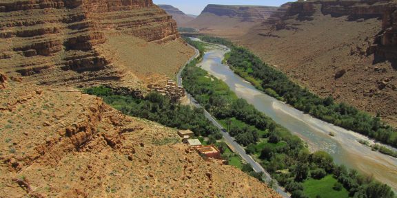 A pak už sjíždíme mezi kopci dolů. Nedlouhou, snad asi dvou set metrovou soutěskou Todra protéká stejnojmenná říčka, po jejíž jedné straně je asfaltka a na druhé straně jsou do úzkého prostoru natěsnány dva hotýlky s restauracemi pro cizince. Celé je to sevřeno mezi dva velmi vysoké skalní útvary. Slunce, pokud nestojí přímo nad, téměř nemá šanci do soutěsky nakouknout. Zkoušíme náš průjezd tudy natočit na videokameru. Tedy přesněji řečeno, zkouším to já. Kameru držím v ruce poprvé. Kluci mi vysvětlují, kde se spouští a že to, co chci natočit, uvidím na displeji. Já zas vysvětluji jim, že to, co chci natočit, na displeji neuvidím. Tak dobré brýle že s sebou nemám. No, myslím, že výsledek bude odpovídající. Já raději fotografuji…