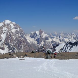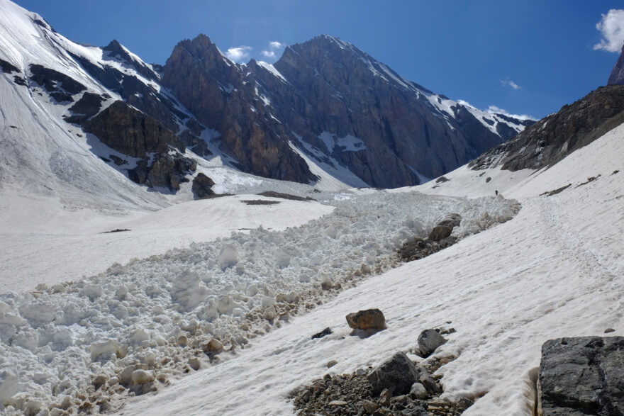 Byla by škoda nevyslyšet volání výšek a nevystoupit zasněženým údolím a po ledovci do průsmyku pod horou Čimtarga. Pokračování přes sedlo Kaznok směrem k jezeru Iskanderkul má svá úskalí i v létě. Posledně jsme to tam museli otočit i v červenci kvůli padajícím lavinám a strženým lávkám přes divokou řeku. Místní horští vůdci se však jen tak něčeho nezaleknou. Obalí si nohy v polobotkách igelitem, místo maček si je ovážou provazem a metelí po ledovci vzhůru do průsmyku, že jim nestačíte. Do rozbouřených horských řek se pak vrhají jištěni jen provazem na osla a po jeho uchycení na druhém břehu ještě přes řeku převádějí vykulené turisty. Zatímco v Nepálu se k místním lidem přeci jen občas dostane odložené nebo místní outdoorové vybavení, v Tádžikistánu stále musí improvizovat s tím, co mají. Cítili jsme až nepřiměřený vděk za těch pár věcí, které jsme jim tam zanechali.