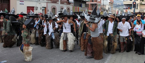 Ešte pred hodinou som nakupoval na povestnom trhu v Otavalo. Teraz už prichádzam autobusom do neďalekého Cotacachi, ktoré je preslávené výrobkami z kože, ale aj festivalom Inti Raymi. Mám veľké šťastie, dnes vrcholí posledný deň tohtoročného festivalu. Dozvedám sa, že festival sa začal pred niekoľkými dňami pri svätom vodopáde blízko mesta, kde miestni vzdávajú hold životodarnému Slnku a Matke Zeme prosiac ich za dobrú úrodu. Táto časť festivalu je prikrytá rúškom tajomstva, lebo je pre turistov nedostupná, zúčastňujú sa na nej iba príslušníci miestnych komunít. Potom festival pokračuje v meste a je spojený s nespútanou zábavou, tancami, spevom, pouličným predajom produktov, hodovaním a ohňostrojmi. Kým prvý deň oslavujú ženy premeniac mesto na pestrofarebnú zmes krojov, pekných tancov a veselej zábavy, ďalší deň je vyhradený detskej zábave.