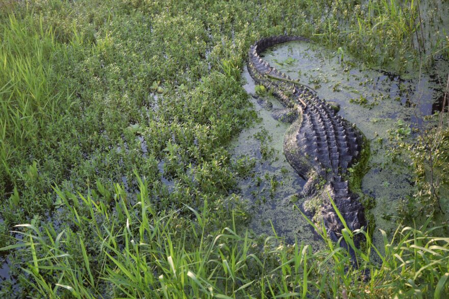 Florida je domovem více než milionu aligátorů, stačilo se tedy zeptat místních, kde naposledy nějakého spatřili a vyrazit za ním. A tak jsme v jednom ze zdejších parků, při okouzlujícím západu slunce, spatřili na vlastní oči aligátora ve volné přírodě.