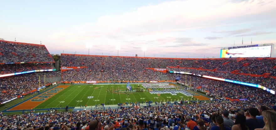 V Gainesville je však možné vidět i jiné aligátory, konkrétně Gators, univerzitní tým amerického fotbalu. Když jsme šli na večerní přípravný zápas, museli jsme se prodírat davy lidí, jimiž byla ulice zaplněna. Není divu, na stadion se vejde okolo 90 000 lidí a fotbal je zde velká věc. Na každém rohu stály stánky co rozdávaly merch a mezi nimi skandovali skupinky fanoušků. Davu vládla oranžová, barva Gators. Býci z jižní Floridy neměli šanci. Oba týmy doprovázely pochodové kapely a za nimi skupiny roztleskávaček. Obří obrazovky v doprovodu hlasitých reproduktorů nabádaly každého k hlasitosti a šílení. Když jsme nakonec vyhráli, strhla se nespoutaná párty ve všech klubech po celém městě. Tanečním parketům chvílemi vládlo i country.
