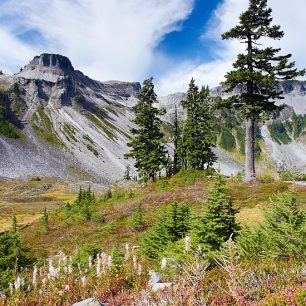 Léto je ve vyšších polohách Severního Kaskádového pohoří velmi krátké. Ve výškách nad 1500 m ještě koncem června leží spousty sněhu a v říjnu už se zase krajina schová pod novou sněhovou peřinu. Sníh je tu zkrátka doma, každoročně ho napadne skoro 20 m! Podzim přichází už v září. Aby to vůbec stihnul, než přijde zima 🙂