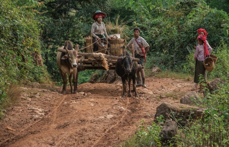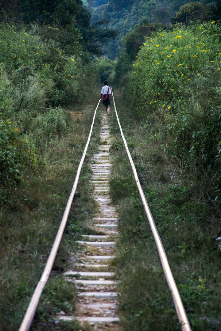 Občas je terén tak neprostupný, že jediná možnost je jít po kolejích. Ovšem vlaky tu nejezdí tak často.Scenérie, které se vám otevírají v průběhu treku, jsou dechberoucí a nabízejí mnoho typů krajiny.Arni neboli buvol indický je důležitý pomocník při spravování polí.V Barmě se vyskytují kmeny, které mluví vlastním dialektem a jsou poměrně dost izolované. Kmeny používají rozpoznávací prvky jako například tato paní, má červeno-oranžový šátek.Transport pomocí místních bůvolích povozů je velice důležitý pro místní obyvatele, protože cesty často nejsou vytvořeny pro pohyb automobilů.Transport pomocí místních bůvolích povozů je velice důležitý pro místní obyvatele, protože cesty často nejsou vytvořeny pro pohyb automobilů.Na jezeře Inle lake rybáři chytají ryby tradičním způsobem.Lodní doprava na jezeře Inle lake je velice důležitá pro místní ekonomiku. Na lodi se převáží lidé i místní komodity.