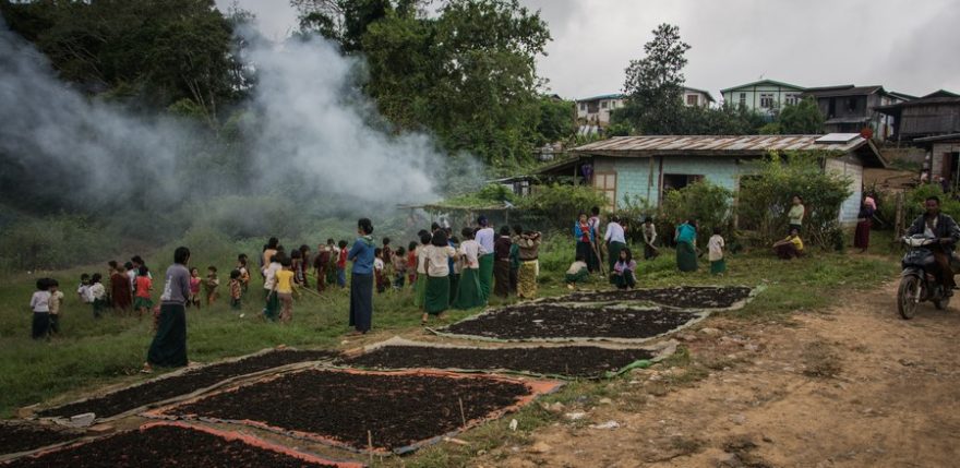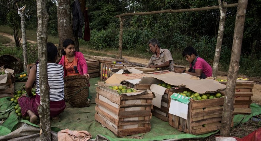 První scenérie, na kterou narazíte, jsou přilehlé rýžové pole poblíž Kalaw. Po krátkém výstupu terénem, který je něco mezi lesem a džunglí, se vám naskytne výhled na nepojmenované pahorky Barmské krajiny.Barmské dívky sbírající čaj z všudepřítomných čajových plantáží.Pěstování rostlin je velmi důležitá obživa pro místní obyvatelstvo. Včetně citrusů, které vidíme na fotografii, to jsou chilli papričky, čaj, rýže. V polovině prvního dne se dostanete do první vesnice na vaší cestě k Inle lake. Do vesnice nevede elektřina ovšem je možné zde nakoupit například místní kolu.Cestou skrz vesnici jsme potkali děti z místní školy. Kromě učení mají i venkovní aktivity. Turisté mají tendence přinést dětem různé dárky. Ovšem průvodce doporučuje dárky dát je učitelkám, které je spravedlivě rozdělí.