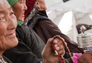 22: Ústředním místem ladacké domácnosti je kuchyň/jídelna. Tady se večer schází celá rodina, tady u kamen se také přečkává dlouhá a tvrdá zima. Hoduje se rýže, čočka, brambory, usrkává čaj s máslem. Starci točí modlitebními mlýnky, tátové upíjejí laciný rum.