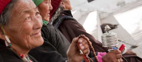 Hlavní město provincie Ladák, Léh (3524m). Po dvoudenním trmácení se autobusem horskými průsmyky jsme na jiné planetě. Do Ladaku monzuny nedosahují, místní poušť hraje odstíny rudé, hnědé, žluté. V pozadí se rýsují zasněžené himálajské vrcholy a vše korunuje tmavomodrá obloha. A místní buddhističtí obyvatelé by se na vás neodvážili zamračit.