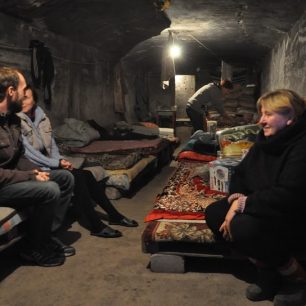 V hornickém městečku Kirovske duní střelba skoro neustále – blízko je Debalcevo, jedno míst kde se boje koncentrují už několik měsíců. Místní lidé se ještě v létě odhodlali k zoufalému řešení. Z nepoužívaného krytu pod kulturním domem odčerpali vodu, zavedli dovnitř elektřinu a nanosili tam lavice a matrace, co kdo měl v bytě po ruce. V prostorách je protivná vlhká zima, po pěti minutách se člověk mimoděk poohlíží po východu. „Radši mrznout než čekat tam nahoře, kdy to na mě spadne,“ říká Světlana, jedna z dočasných obyvatelek krytu, který slouží i lidem z rozbombardovaných domů.