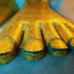 Ohromná socha ležícího Buddhy v Bangkoku ve Wat Po.