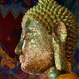 Na sochy Buddhů lepí lidé tenounké zlaté plíšky.
