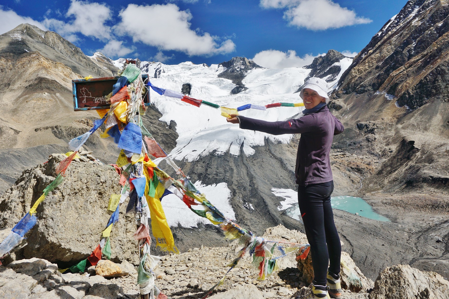 Blízko jezera Tilicho věšíme modlitební praporky. Je slunečné a větrné ráno, nejpříznivější doba