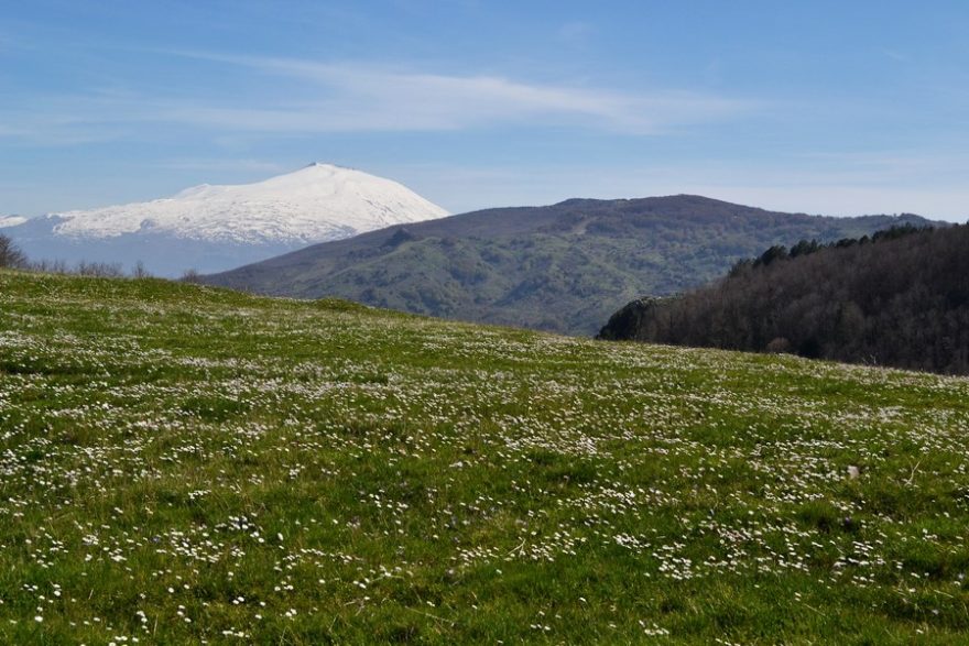 Na loukách se volně pasou stáda koní, koz nebo ovcí, Nebrodi