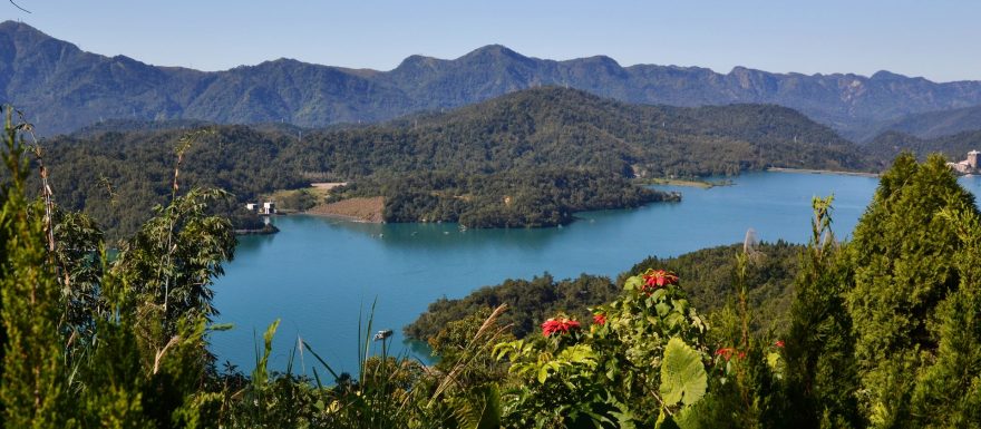 Výhledy na jezero od pagody Ci’en, jezero Slunce a měsíce, Taiwan.