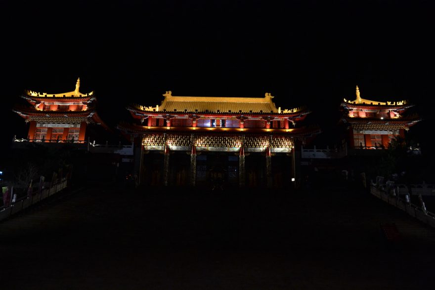 Ozdobný vchod chrámu Wen-wu, jezero Slunce a měsíce, Taiwan.