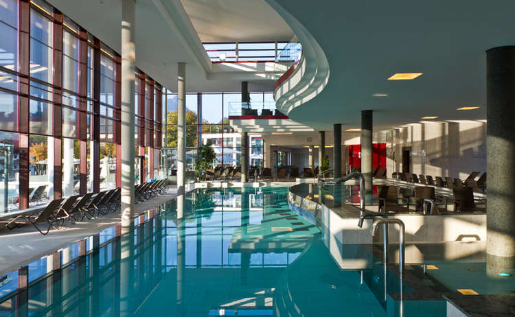 Venkovní bazén Bachei s lezeckou stěnou. Foto: DTZ/Bad Reichenhall Gmbh