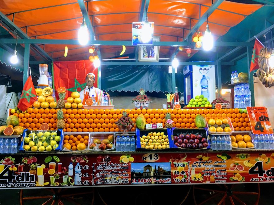 Galerie: Bohatý noční život v marockém Marrákeši láká na akrobaty, pouliční dobroty i hady