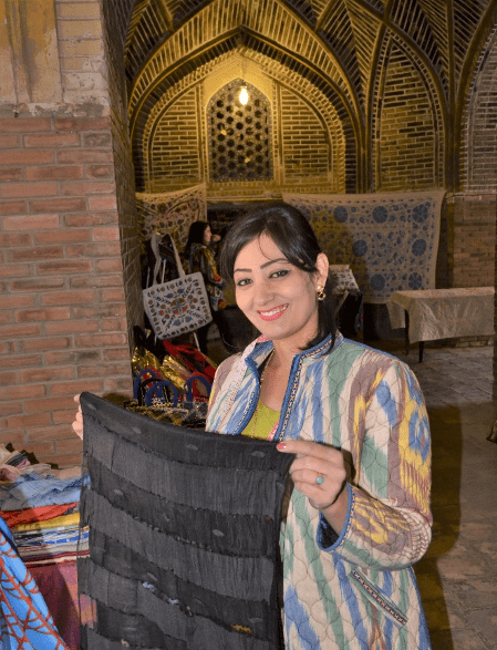 Tradiční ženské hedvábné a brokátové šátky, dar synagoze, Uzbekistán a Afghánistán (Izraelské národní muzeum, Jeruzalém)