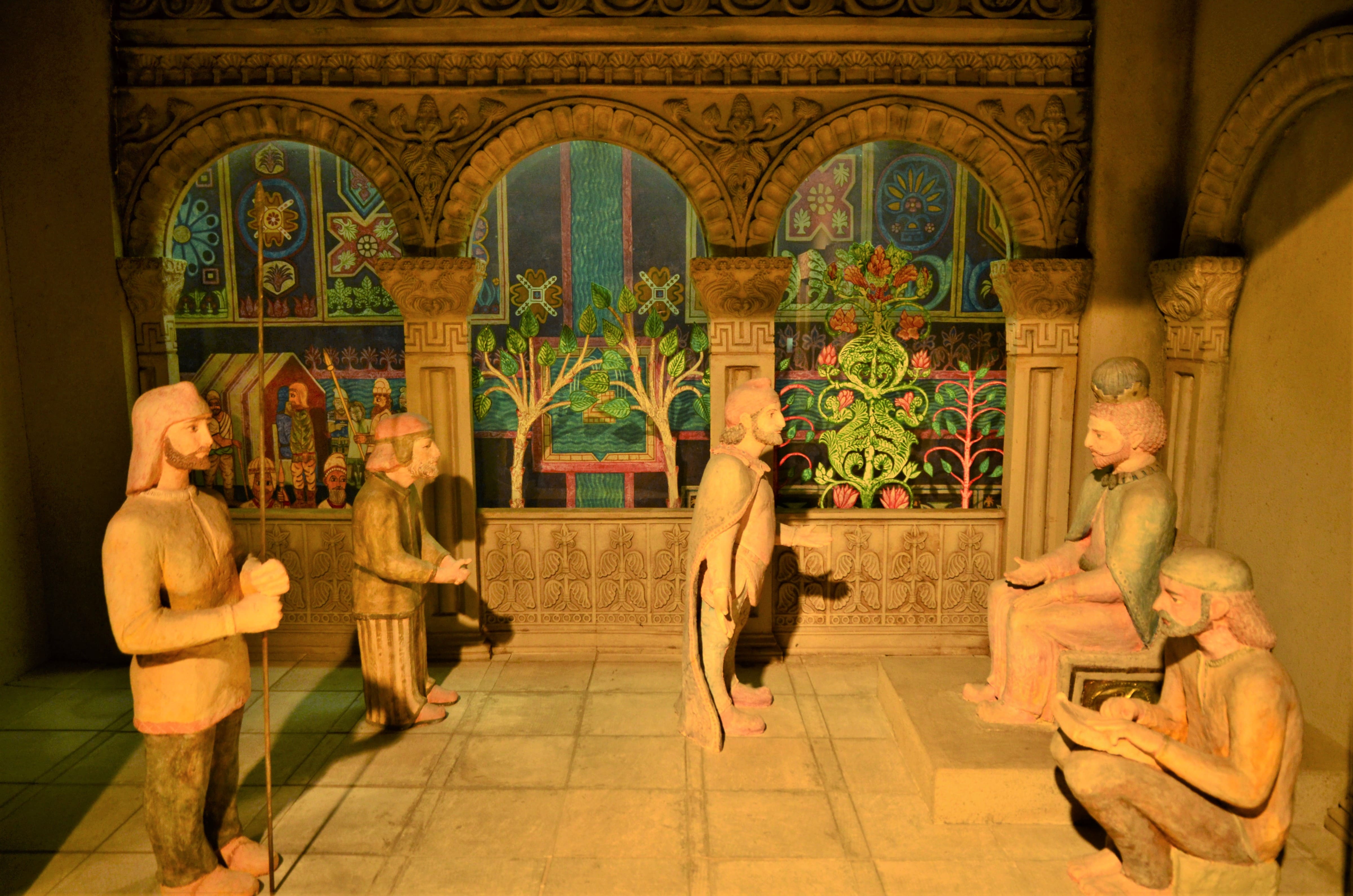 Židovský exilarcha Huna přijímá vážené členy komunity ve své vile v perském stylu, Muzeum diaspory, Tel Aviv, Izrael