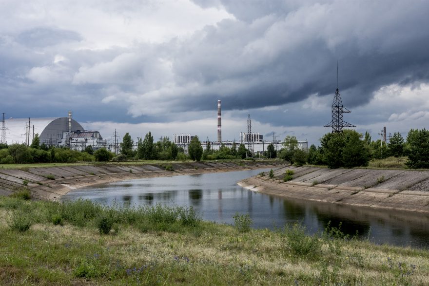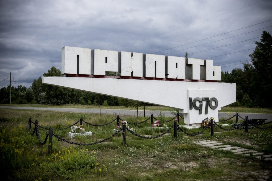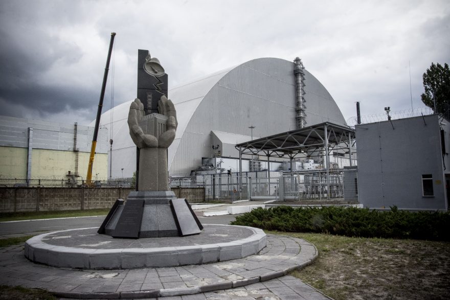 Další z místních připomínek katastrofy a reaktor číslo 4. skrytý pod novým sarkofágem.