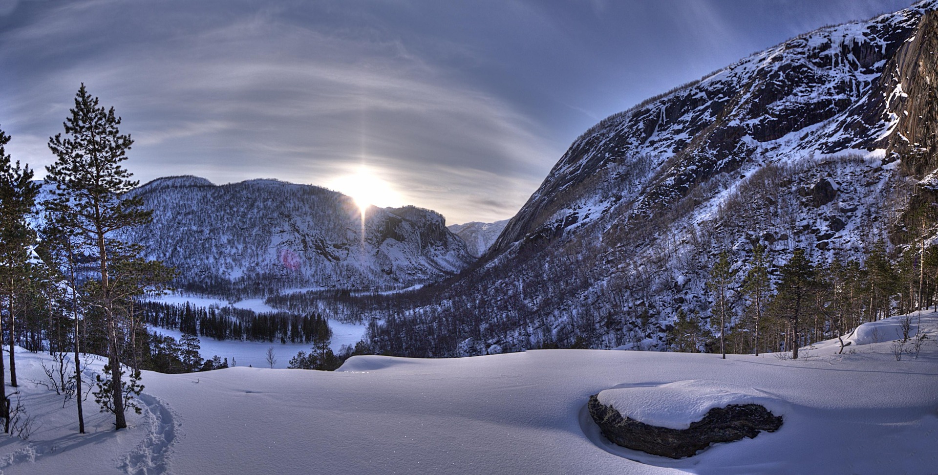 NP Rago. Pod námi se vine řeka, která tvoří v zimě jedinou spojnici